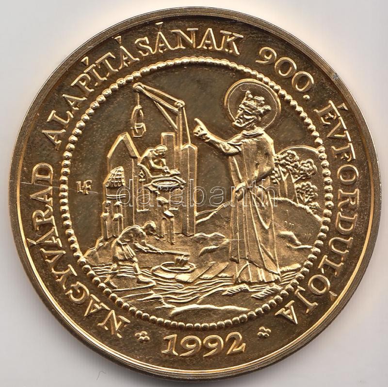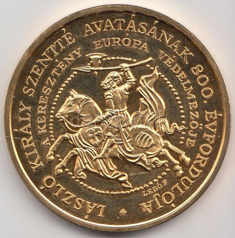 Lebó Ferenc (1960-) 1992. "László király szentté avatásának 800. évfordulója / Nagyvárad alapításának 900. évfordulója" aranyozott emlékérem (42,5mm) T:PP