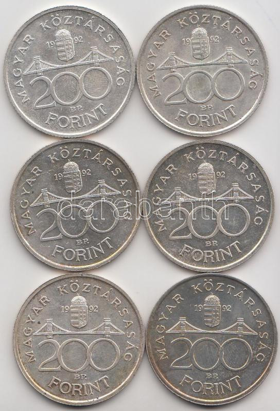 https://www.darabanth.com/en/195-Online-auction/195.0/Numismatics/Hungarian-metal-and-silver-coins~400007/1992-200Ft-Ag-MNB-6x-T2~II747255