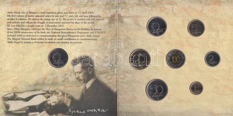 https://www.darabanth.com/en/195-Online-auction/195.0/Numismatics/Hungarian-metal-and-silver-coins~400007/2005-1Ft-100Ft-7klf-db-plus-10Ft-Jozsef-Attila-disztokos-szettben-TBU-Csak-8000db~II743906