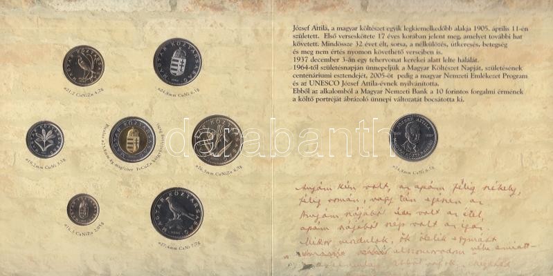 2005. 1Ft-100Ft 7klf db + 10Ft "József Attila" dísztokos szettben T:BU Csak 8000db!
