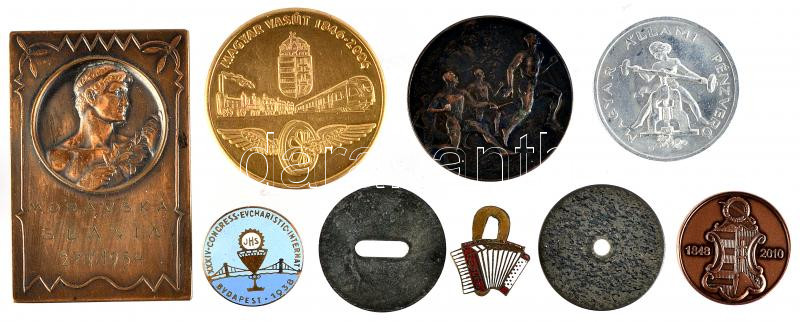Kis vegyes tétel: zománcozott kitűző/jelvények + emlékérmek + sportérmek, összesen 9db T:vegyes