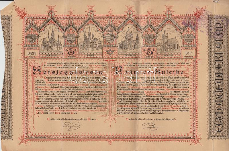 Budapest 1886. "Egyházi Műemléki Alap Sorsjegykölcsöne 5Ft-ról a budap... https://www.darabanth.com/en/195-Online-auction/195.0/Numismatics/Shares-and-Tickets~400005/Budapest-1886-Egyhazi-Muemleki-Alap-Sorsjegykolcsone-5Ft-rol-a-budapest-lipotvarosi-bazili~II750121