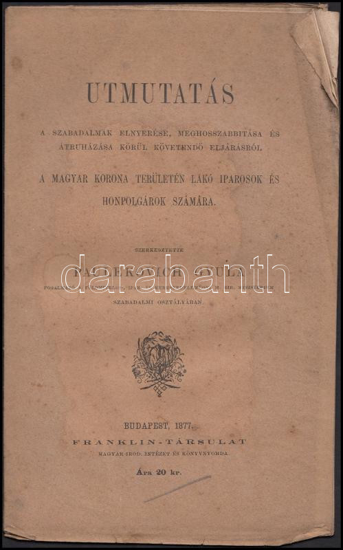 https://www.darabanth.com/en/195-Online-auction/195.0/Other-collectibles/Books-Science-and-technology~800027/Paulekovich-Gyula-Utmutatas-a-szabadalmak-elnyerese-meghosszabitasa-es-atruhazasa-korul~II747112