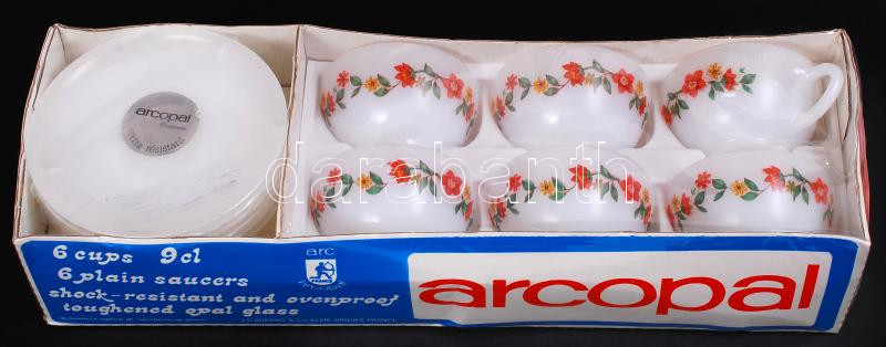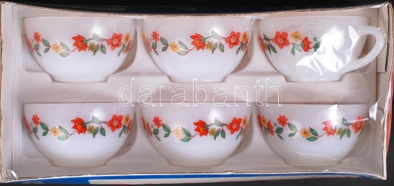 Francia opál csésze készlet, matricás, hibátlan, eredeti dobozában