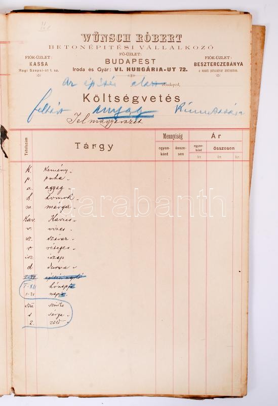 1897 A káposztásmegyeri víz átemelőtelep építésének tervei, költségvetése 30 oldal, benne 8 rajzolt terv
