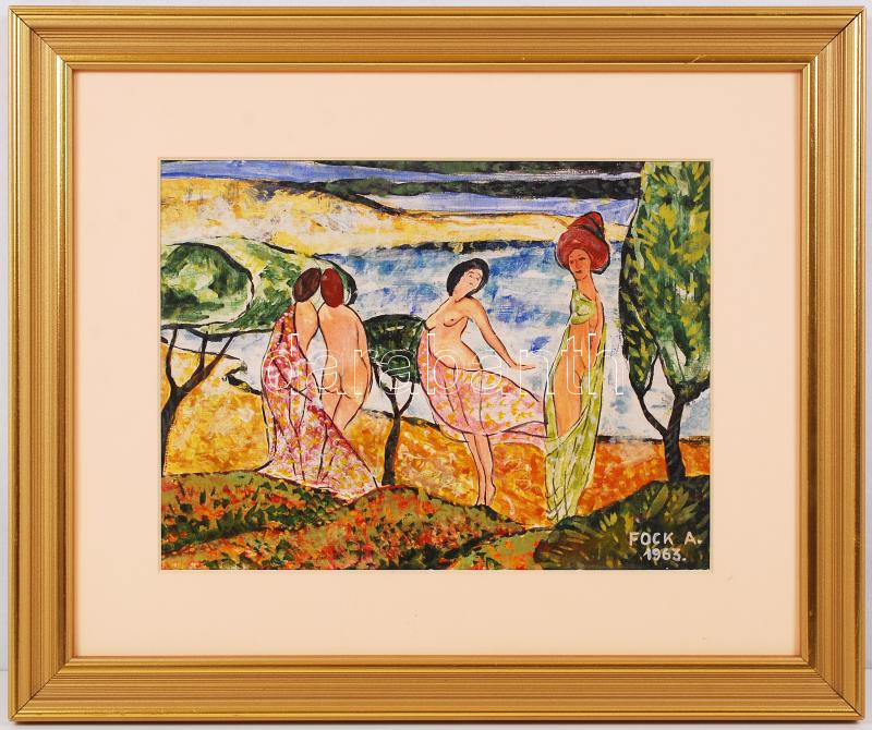 Fock A. jelzéssel: Fürdőzők. Olaj, karton, keretben, 21×27 cm