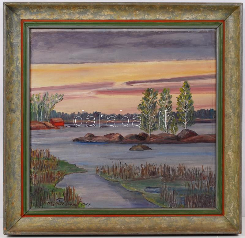 N. Nilsson jelzéssel: Lápos vidék. Olaj, farost, modern keretben, 37×36 cm