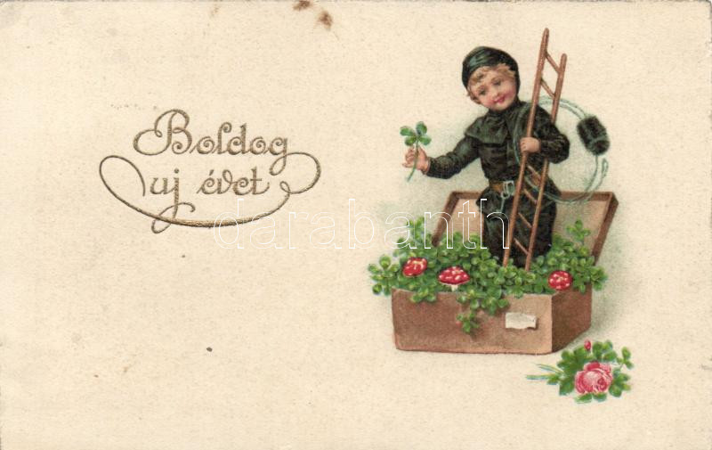 New Year, chimney sweeper, Emb. litho