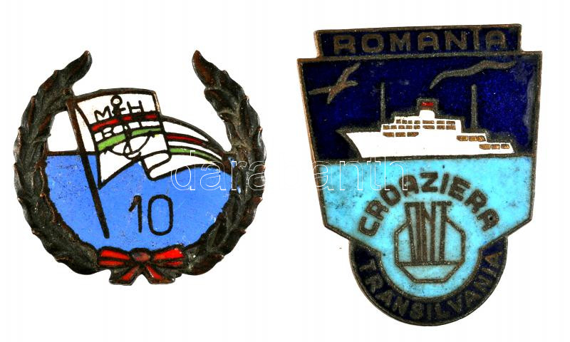 ~1960. "MHRT" 10 éves szolgálati jelvény zománcozott + "Romania Croaziera Transilvania" zománcozott jelvény T:1,2