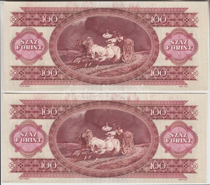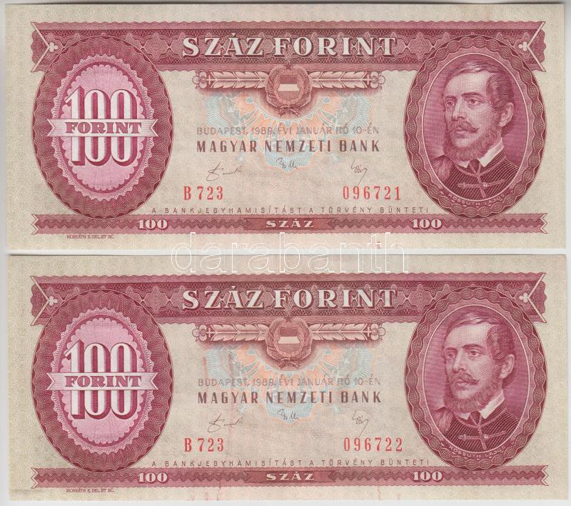 1989. 100Ft (2x) egymás utáni sorszámmal, nyomdai papírráncokkal és fe...