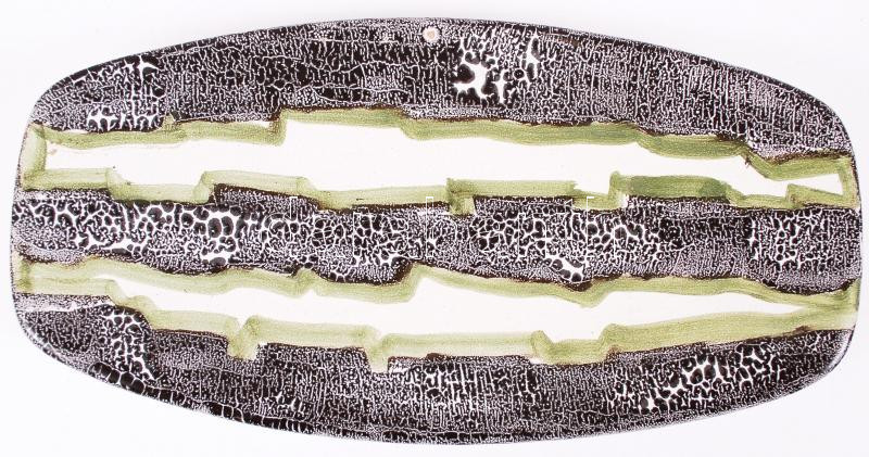 Jelzett retró festett, mázas, kerámia tál, hibátlan, 18×35 cm