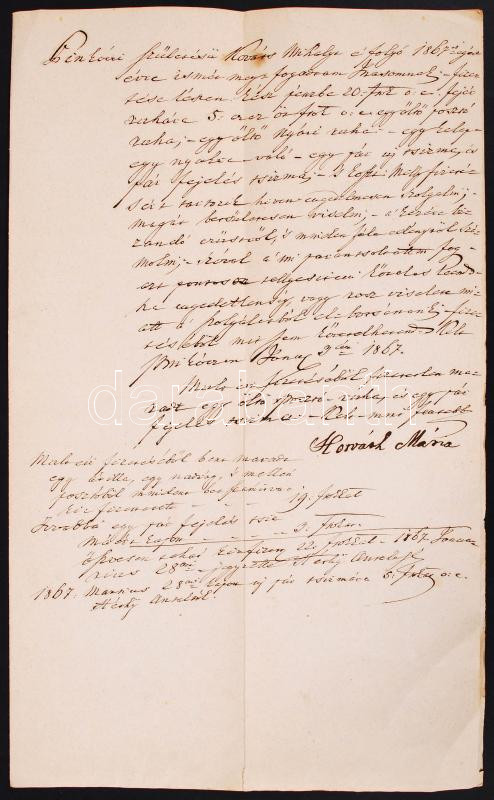 1867 Pálóczi Horváth Mária a református egyház mecénása által aláírt o...