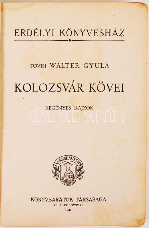 https://www.darabanth.com/en/196-Online-auction/196.0/Other-collectibles/Books-History~400033/Tovisi-Walter-Gyula-Kolozsvar-kovei-Cluj-Kolozsvar-1937-Konyvbaratok-tarsasaga-Papir-k~II753671