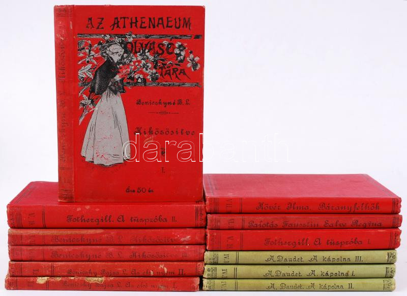 Az Athenaeum Olvasótára. Bp., 1896, Singer és Wolfner. Piros és zöld Gottermayer egészvászon kötésben. 12 db a sorozatból
