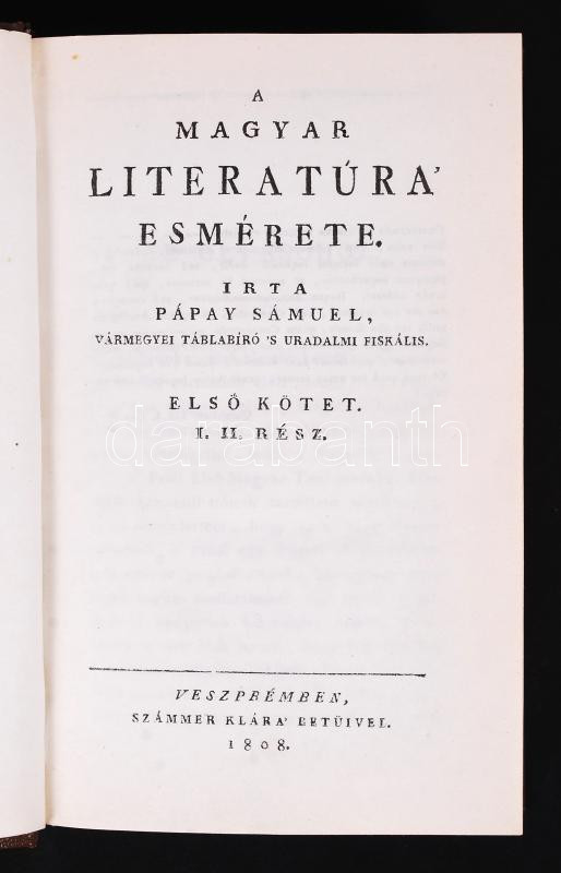 Pápay Sámuel: A magyar literatúra esmérete I-II. Veszprém, 1808 (Repri...