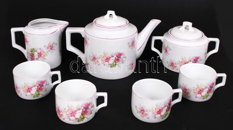 Hiányos Zsolnay teás készlet, matricás, jelzett, hibátlan