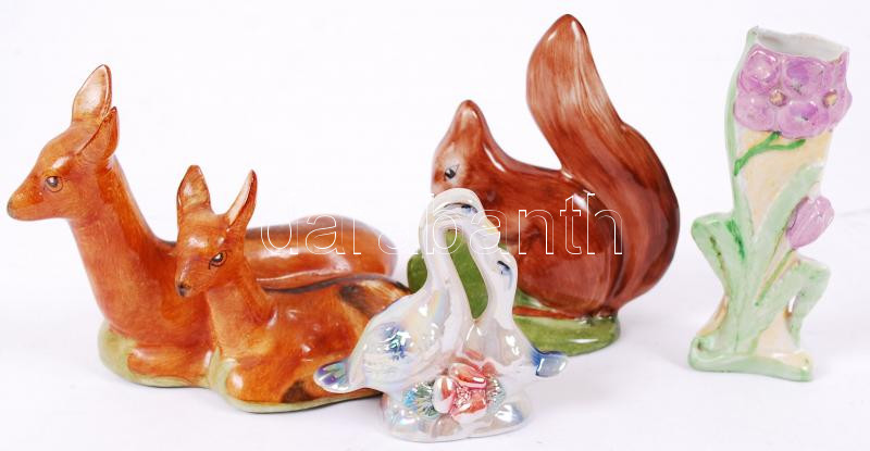Kis porcelántétel: kézzel festett, virágos vázácska, mókus, őzikék és kacsák /