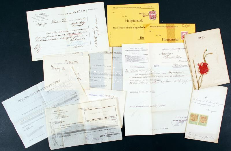 cca 1900-1920 10 db okmány és nyomtatvány, benne biztosítási és postaügyi iratok is