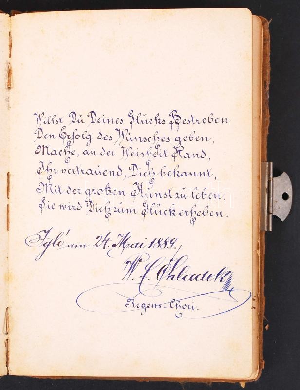 1889 Veretes emlékkönyv néhány rajzzal. Gerinc hibás