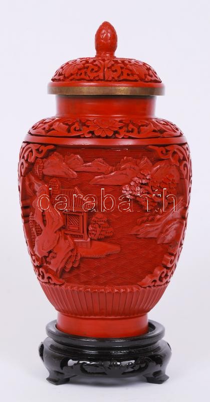 Keleti tájat ábrázoló, zsírkő-zománc váza, hibátlan, m:19 cm