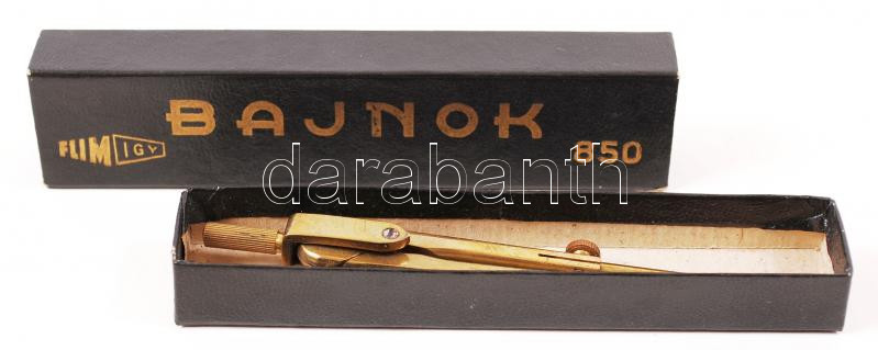 cca 1950 Bajnok körző, sárgaréz. Eredeti dobozában