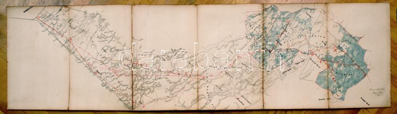 1895 A Székely Vasutak és M. kir. Államvasutak által épített Csíkszereda- Gyimes-szorosi vonal tervei és dekoratív hossz-szelvénye 280x35 cm