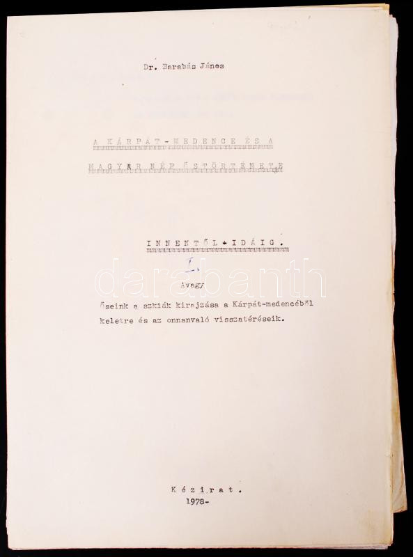 1978 Dr Barabás János: A Kárpát-medence és a magyar nép őstörténete. Ő... https://www.darabanth.com/en/196-Online-auction/196.0/Other-collectibles/Historical-documents-manuscripts~400016/1978-Dr-Barabas-Janos-A-Karpat-medence-es-a-magyar-nep-ostortenete-Oseink-a-szkitak-ki~II753141