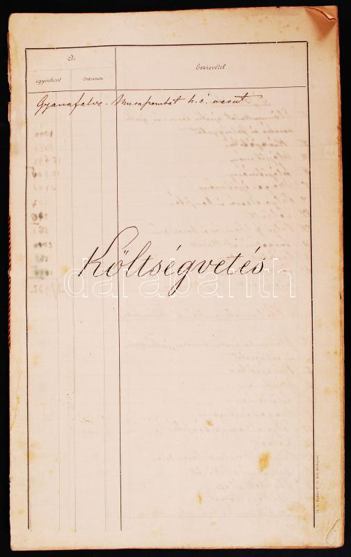 cca 1880 A Gayanafalva-Muraszombat helyi érdekű vasút költségvetése / ...