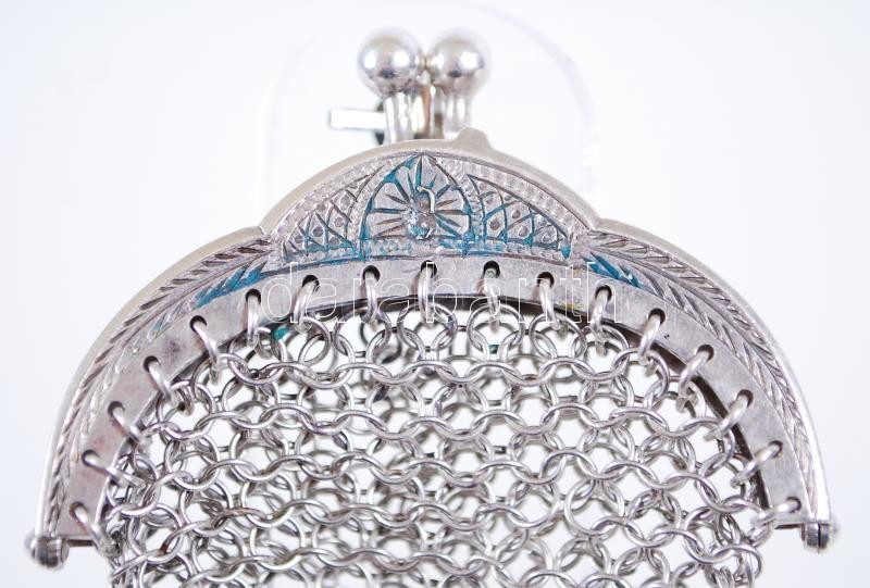 1872-1922 Ezüst (Ag) horgolt láncszemes aprópénztartó erszény bécsi be...