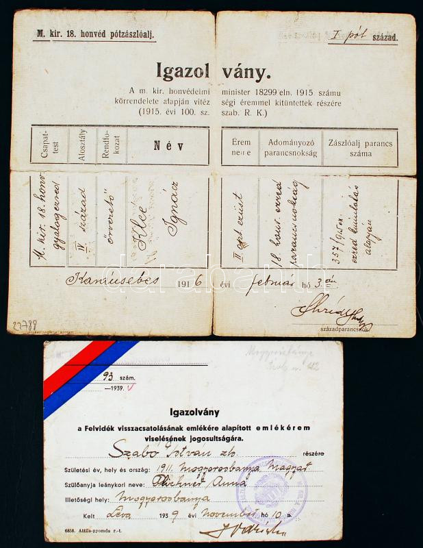 1916 Nagykáta, igazolvány vitézségi éremmel kitüntettek részére (Kleé ...