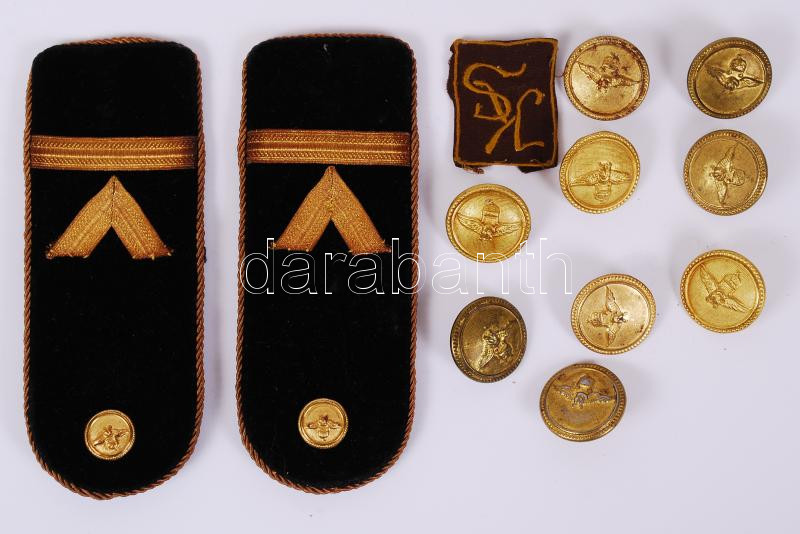Horthy repülős tiszti vállap, 9 db gombbal és egy KS monogramos felvar...