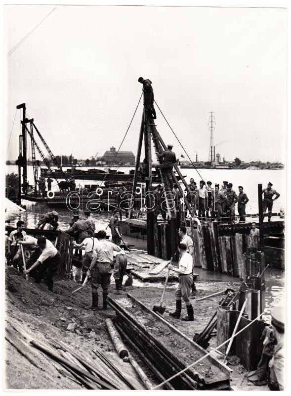 cca 1950 Hídverők, katonai fotó, 24x18cm