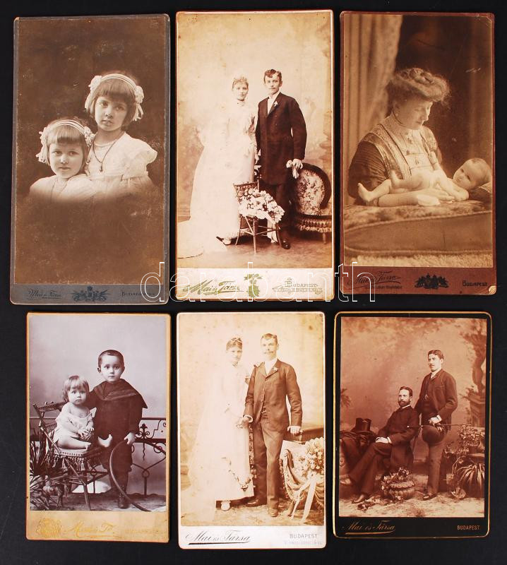 1884-1920 Mai Manó és Tsa: 6db kabinetfotó, hat különféle hátoldali gr...