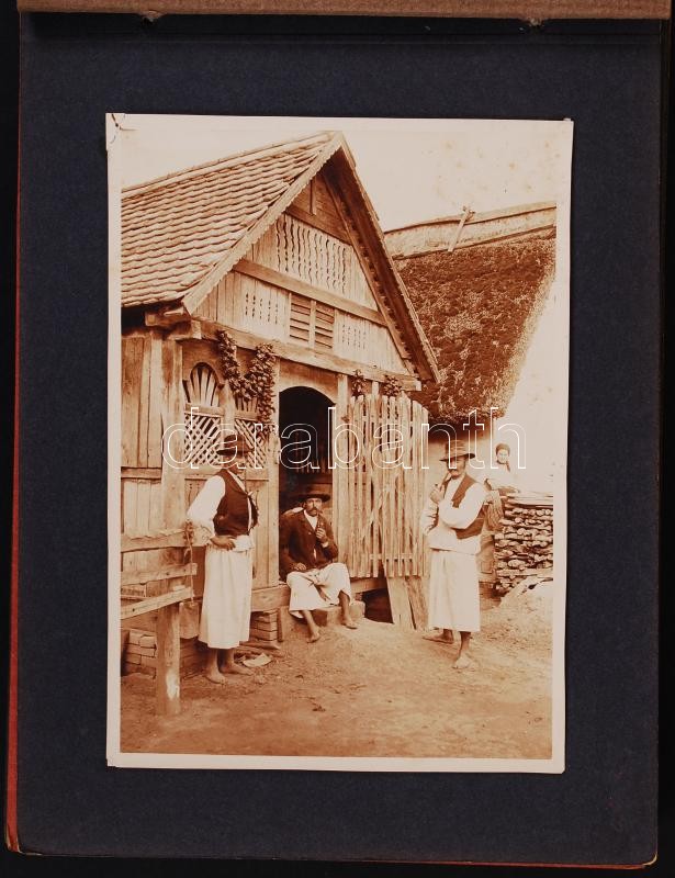 1900-1910 Fotóalbum izgalmas néprajzi leletekkel: 15db fotó, fűzött, s...