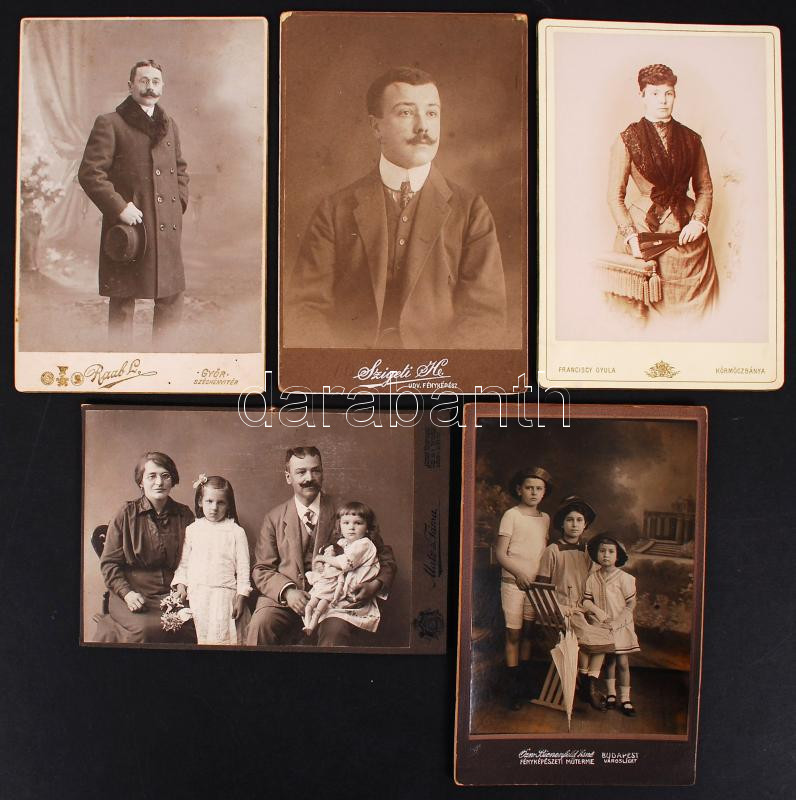 1900-1920 5db kabinetfotó különféle műtermekből, hátoldalukon a fényké...