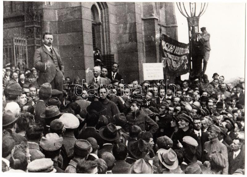 1919 Kun Béla beszédet mond a Parlament előtt, későbbi nagyítás, 17x23...