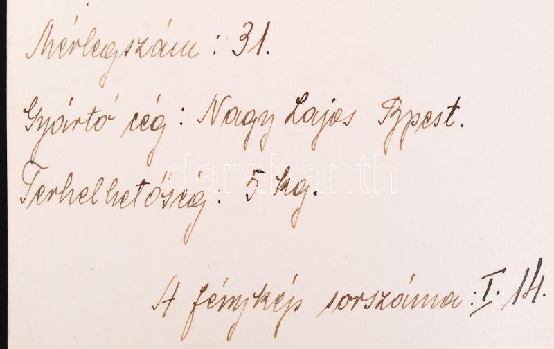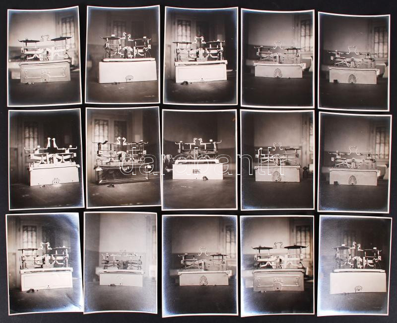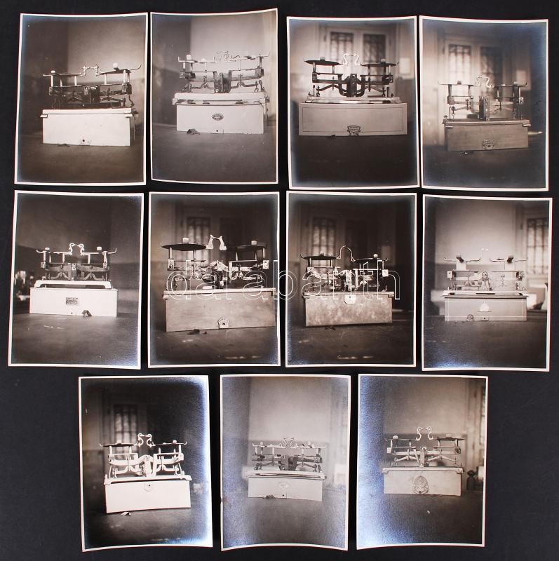 Description: 1920-1940 Technikatörténeti jelentőséggel bíró fotósorozat magyar gyártmányú asztali mérlegekről. 35db, feliratozott fotó, a gyártó és a terhelhetőség feltüntetésével, 8x10cm