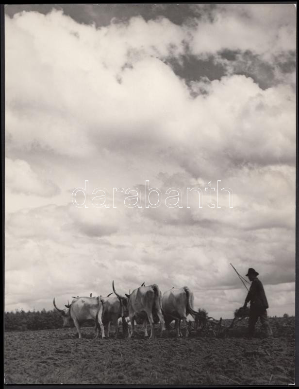 1936 Osoha László: Szántás. Vintage fotó, hátoldalán szerzői pecséttel...