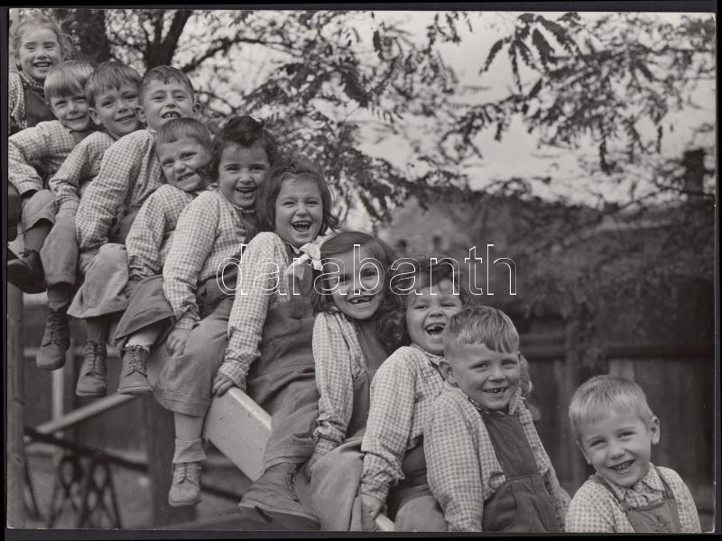 1945-1950 Dr. Csörgeő Tibor (1869-1868) vintage fotója gyermekekről, hátoldalán pecséttel jelzett, 18x24cm