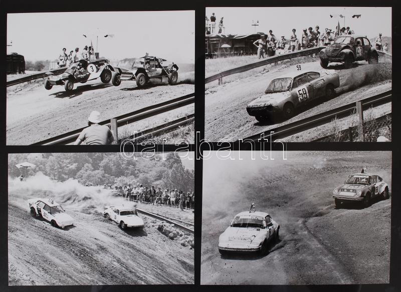 1960-1970 Fotótétel egy autóversenyről, 8db fotó, hátoldalán a versenyzők nevével, 12x17cm