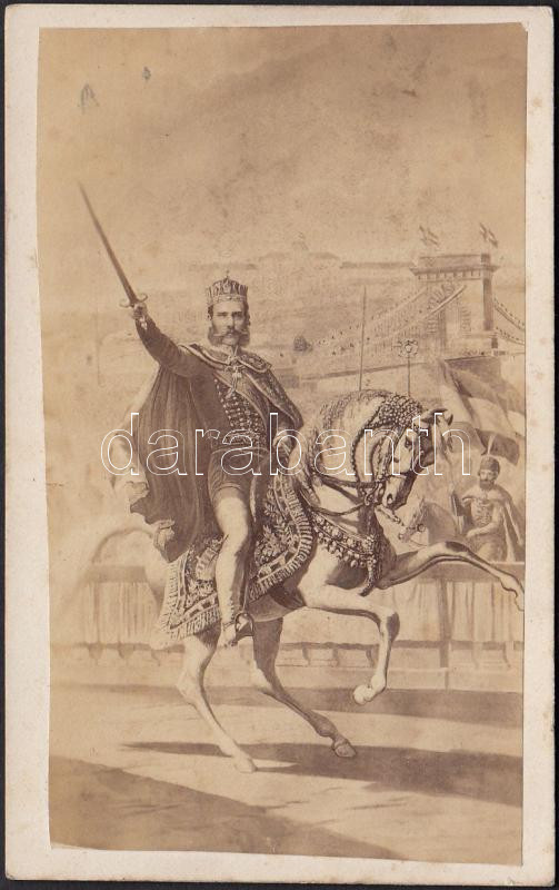 https://www.darabanth.com/en/196-Online-auction/196.0/Other-collectibles/Photo~400018/cca-1880-Ferenc-Jozsef-kivont-karddal-lohaton-a-Lanchid-elott-Fotoreprodukcio-kartonra-kasC3~II754578