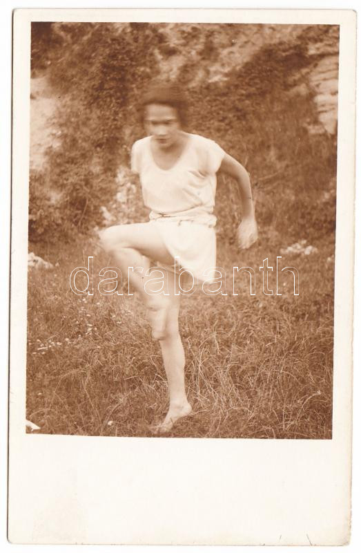 cca 1930 Ismeretlen szerző fotója a Szentpál Olga mozgásművészeti iskola egyik növendékéről, levlap méretben