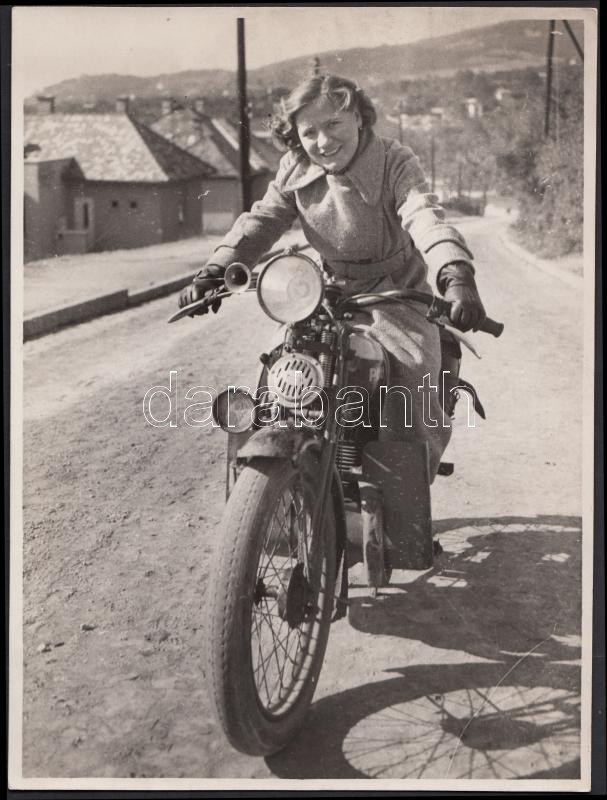 cca 1940 Motoros hölgy, 24x18cm