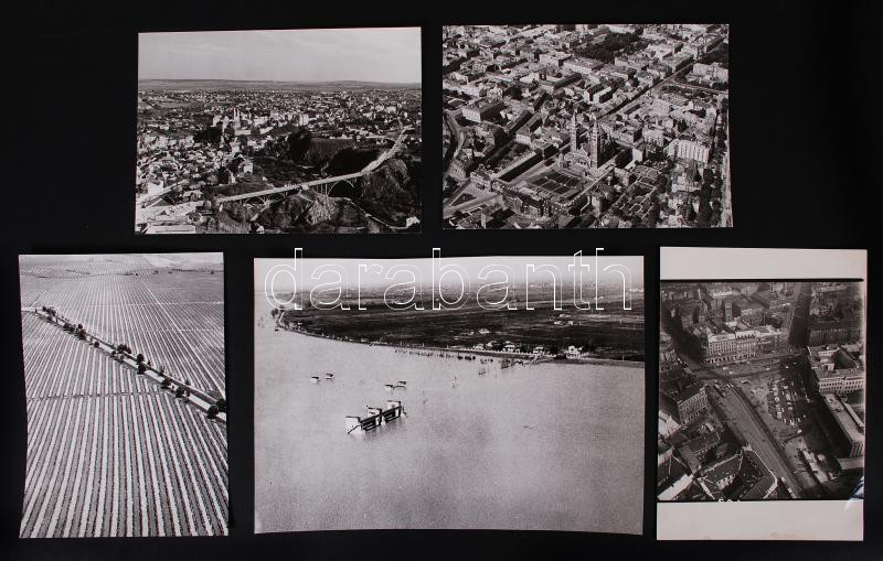 cca 1960-1980 Légifotók Magyarországról: Veszprém, Balatonboglár, Békésszentandrás, Szeged, Budapest, Debrecen, 13x18-18x24cm