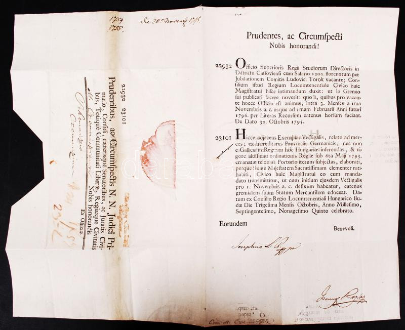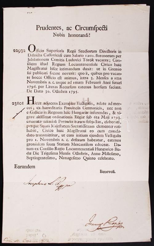 1795 budai helytartótanács határozatai, József főherceg, későbbi nádor... https://www.darabanth.com/en/196-Online-auction/196.0/Other-collectibles/Printed-Materials~400026/1795-budai-helytartotanacs-hatarozatai-Jozsef-foherceg-kesobbi-nador-sajat-kezu-alairC3~II753982