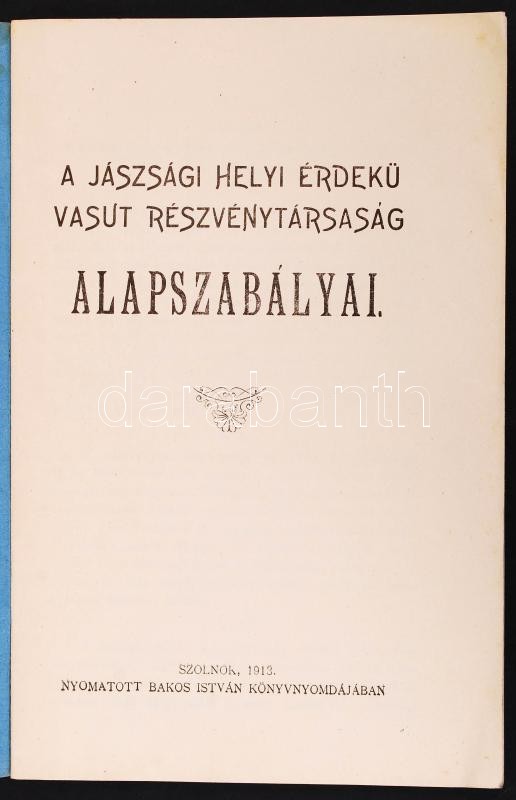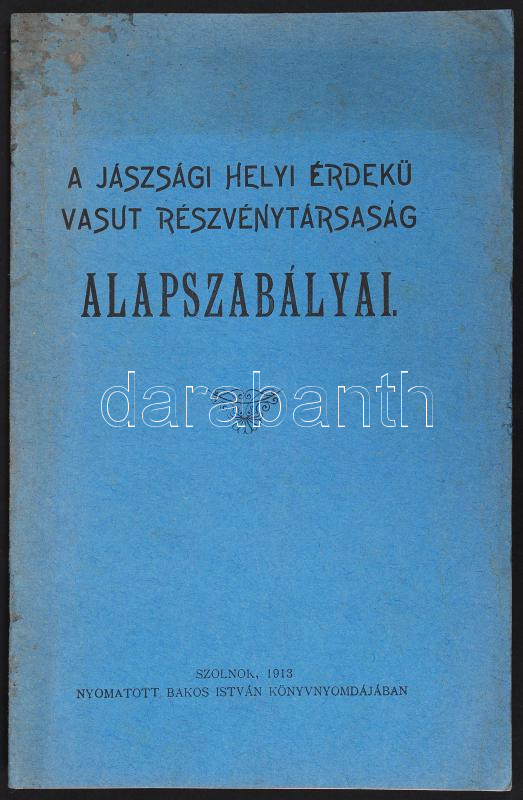 https://www.darabanth.com/en/196-Online-auction/196.0/Other-collectibles/Printed-Materials~400026/1913-A-jaszsagi-helyi-erdeku-vasut-reszvenytarsasag-alapszabalyai-Szolnok-1913-Bakos-24~II757266