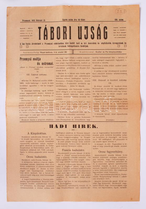 https://www.darabanth.com/en/196-Online-auction/196.0/Other-collectibles/Printed-Materials~400026/1915-Przemysl-Tabori-Ujsag-108-szam~II755183