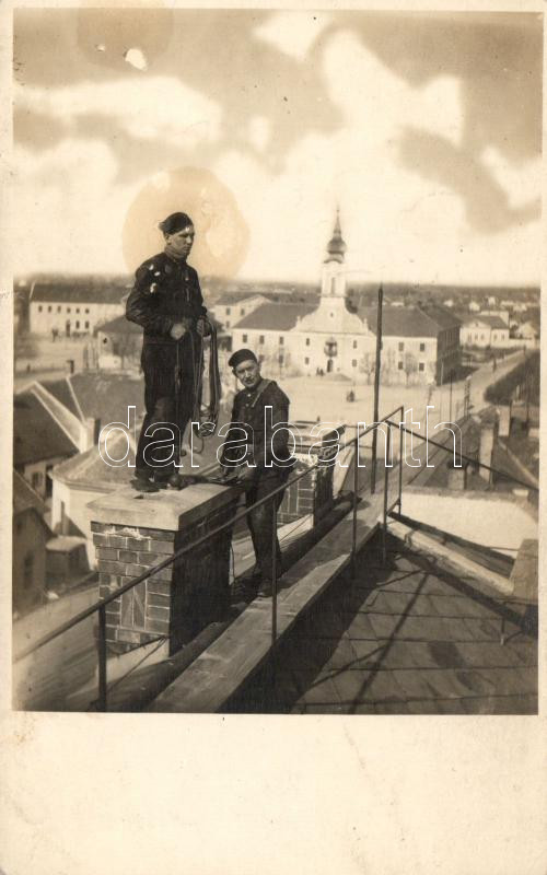 Nagykőrös, városháza, kéményseprők, photo (kis szakadás / small tear)