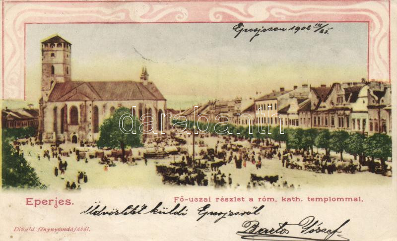 Eperjes, Fő utca, Római katolikus templom / street, church, market (fa)