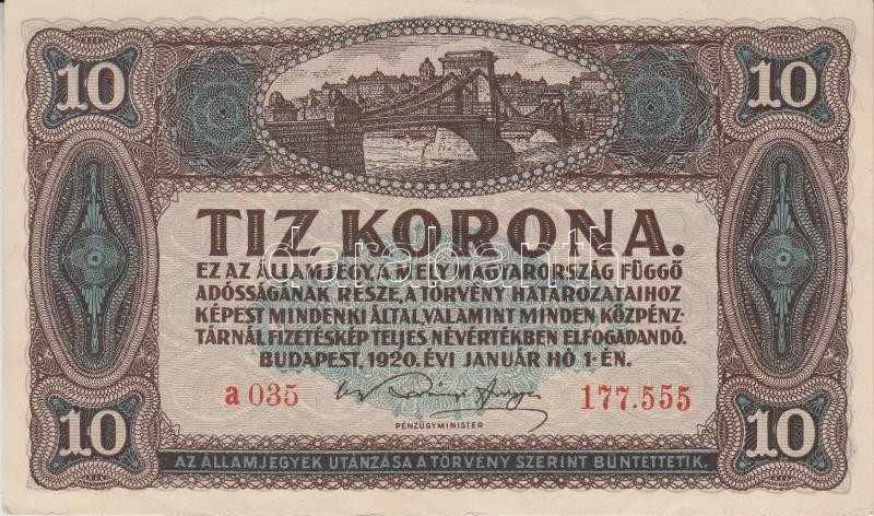 1920. 10K (2x) egymás utáni sorszámmal T:I-